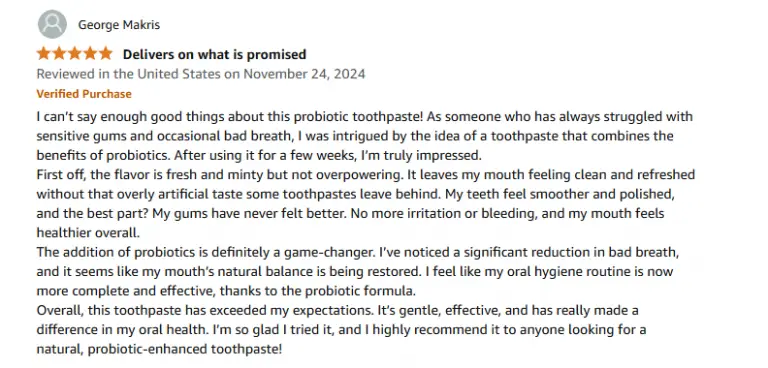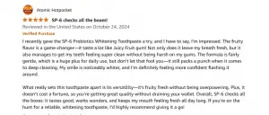 I was able to say goodbye to Halitosis and restore my confidence with fresh breath by using Sp-6 probiotic toothpaste.
